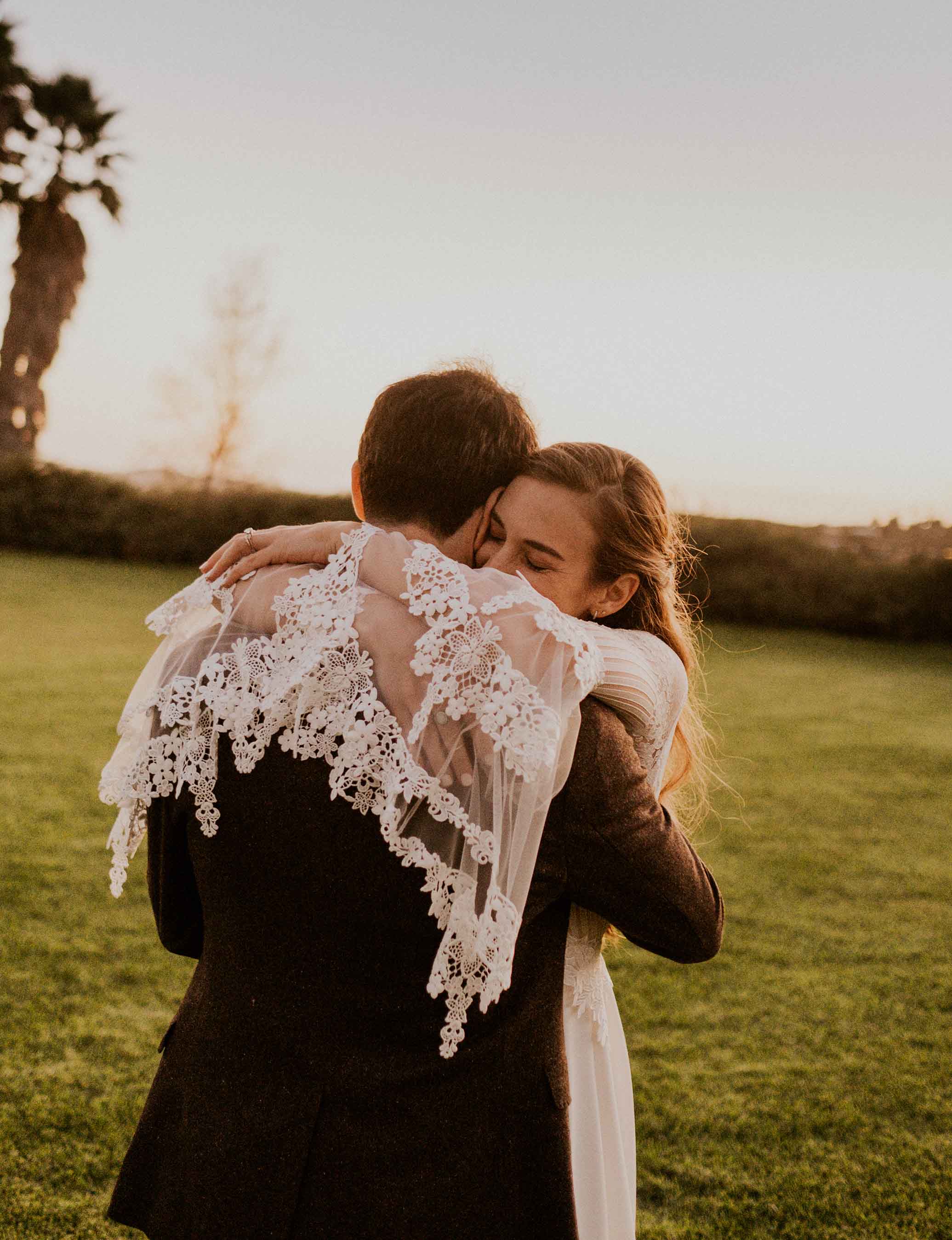 Spanish hacienda or bohemian garden party…either way, our Sauvignon wedding dress from the Romantique Collection makes a beautiful statement. The cotton lace bodice is made of an antique Leaver's lace pattern, and flows into a full A-line crepe skirt with a dramatic cathedral length long train. The layered tulle long sleeves with Guipure lace appliques are the utterly romantic icing on the cake!