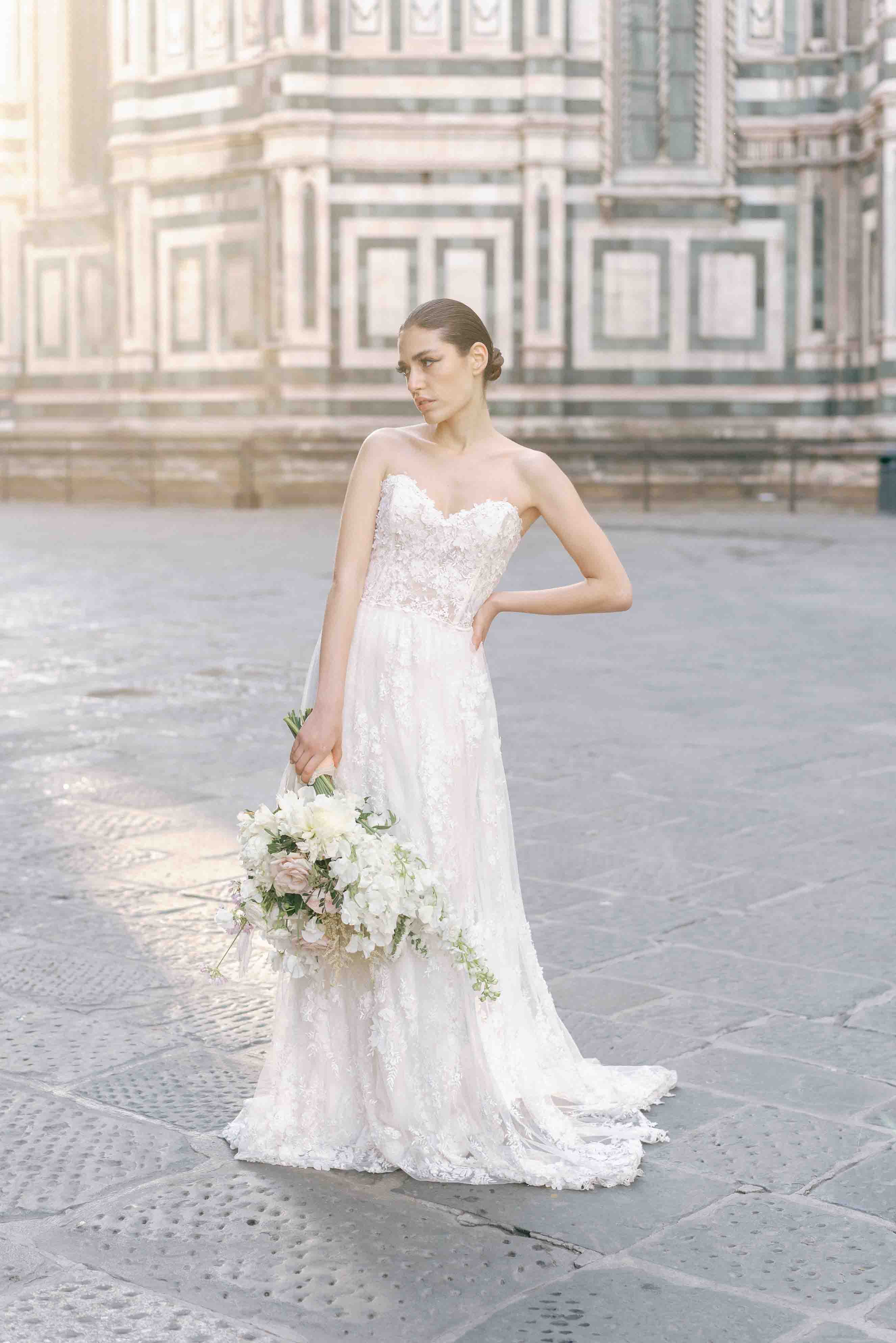 Part of The Timeless Wedding Gown Collection, the Anais bride will set an utterly romantic tone for the entire wedding. Dreamy, light layers and hand-crafted 3-D detailing, this strapless sweetheart neckline wedding dress will be the talk of your wedding now, and for years to come.