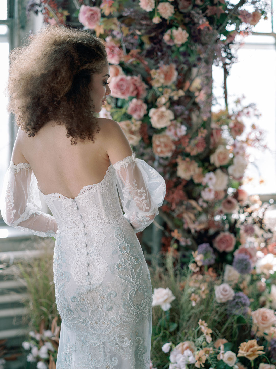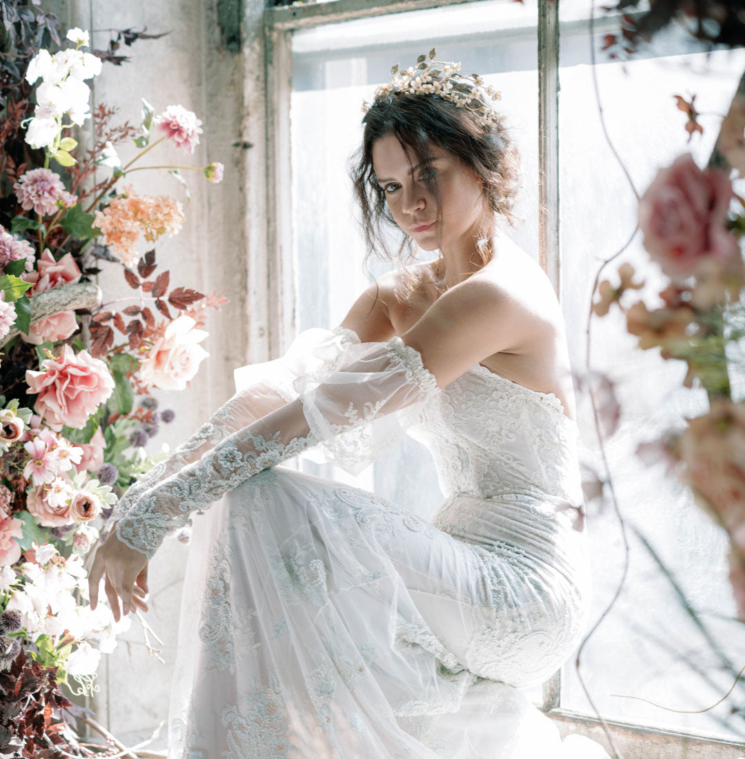 Claire Pettibone is a visionary designer whose collection embodies effortless style, luxurious detailing, and an enchanted spirit. With her deeply feminine sensibility and unique artistry, she creates ethereal, bohemian, and vintage-inspired wedding gowns that make women feel like goddesses.