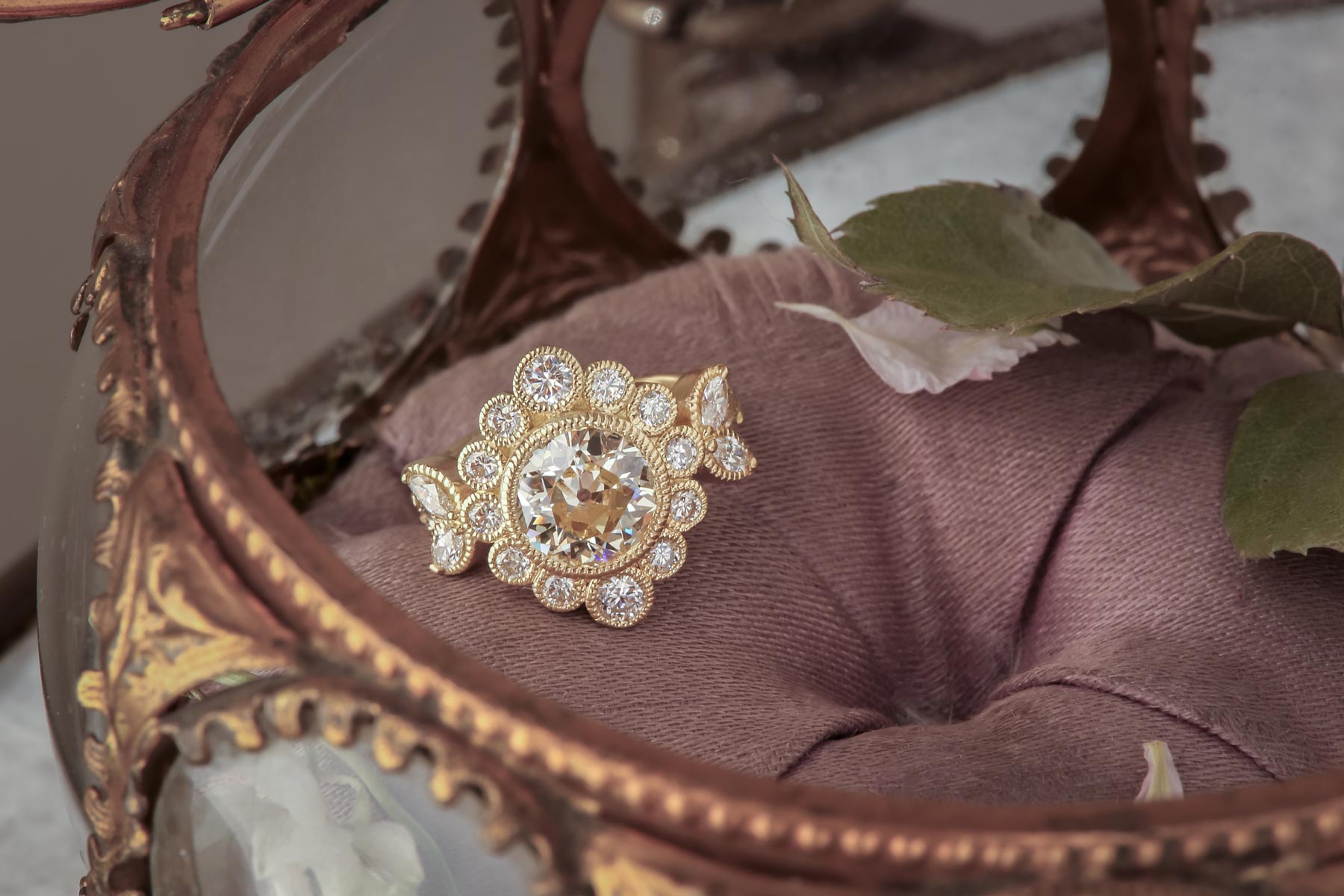 Maria is a true artisan. Every piece is carefully created through both modern and traditional techniques, beginning with day-dreams, sketches, and a hoard of gemstones. From antique and natural diamonds, to glowing sapphires and precious gems of every hue, let us guide you to the ring that sings to you and your love.