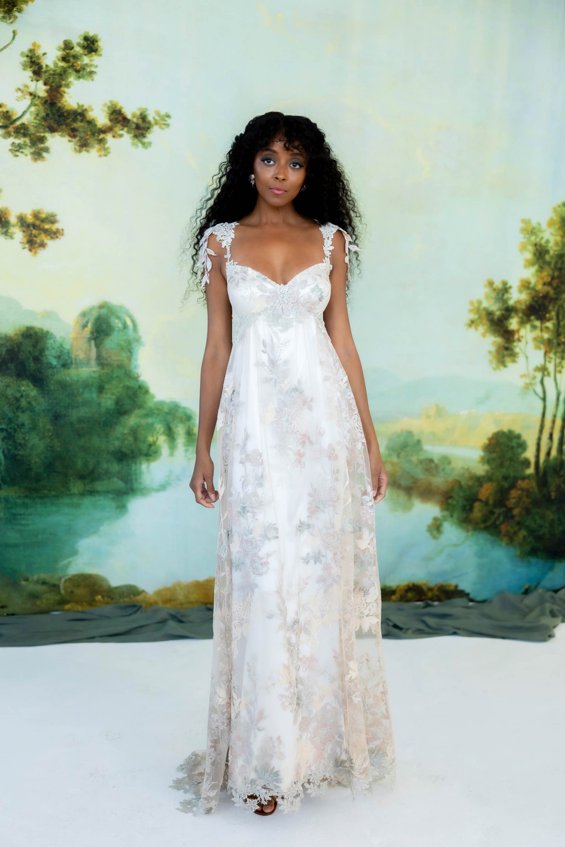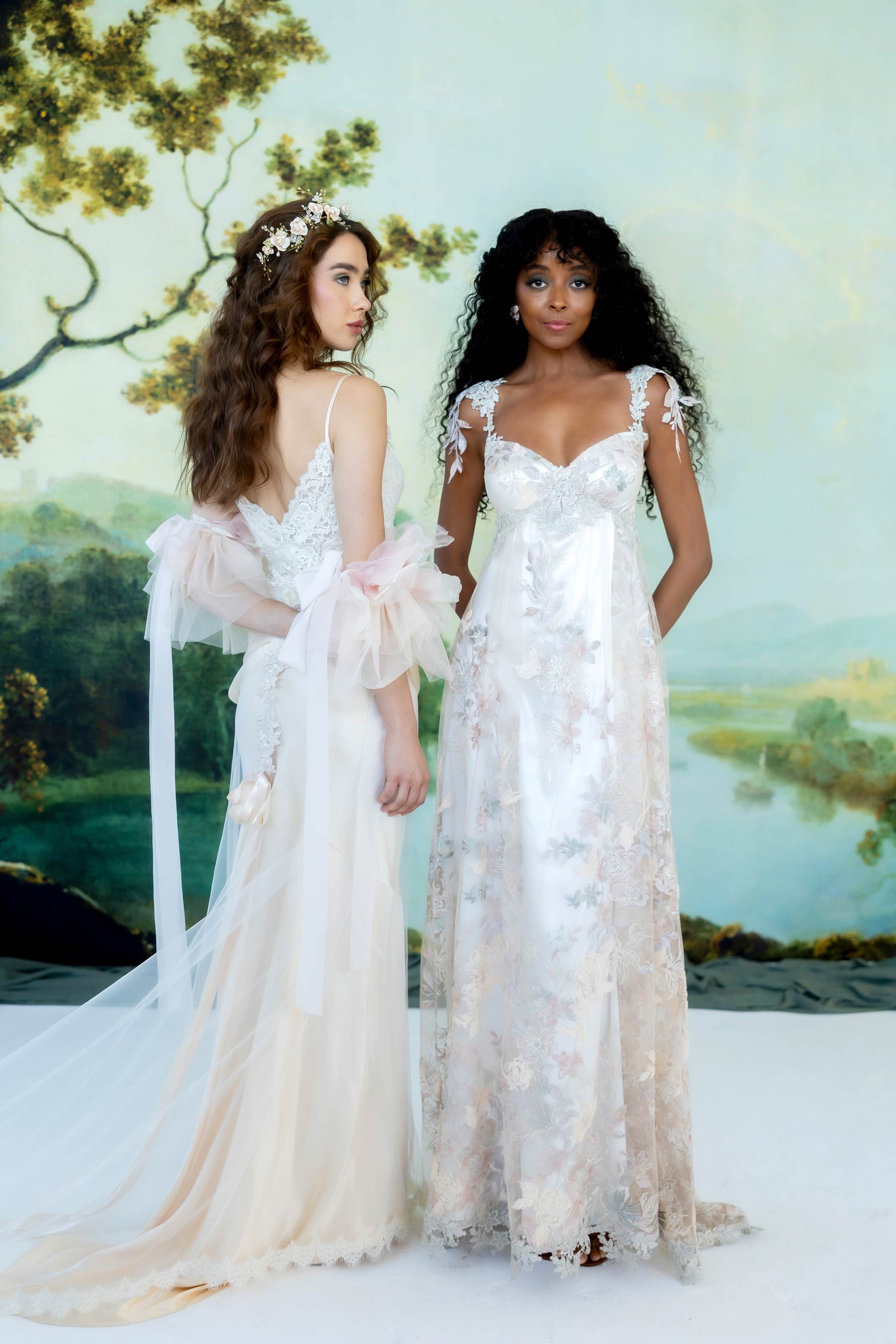 Claire Pettibone is a visionary designer whose collection embodies effortless style, luxurious detailing, and an enchanted spirit. With her deeply feminine sensibility and unique artistry, she creates ethereal, bohemian, and vintage-inspired wedding gowns that make women feel like goddesses.