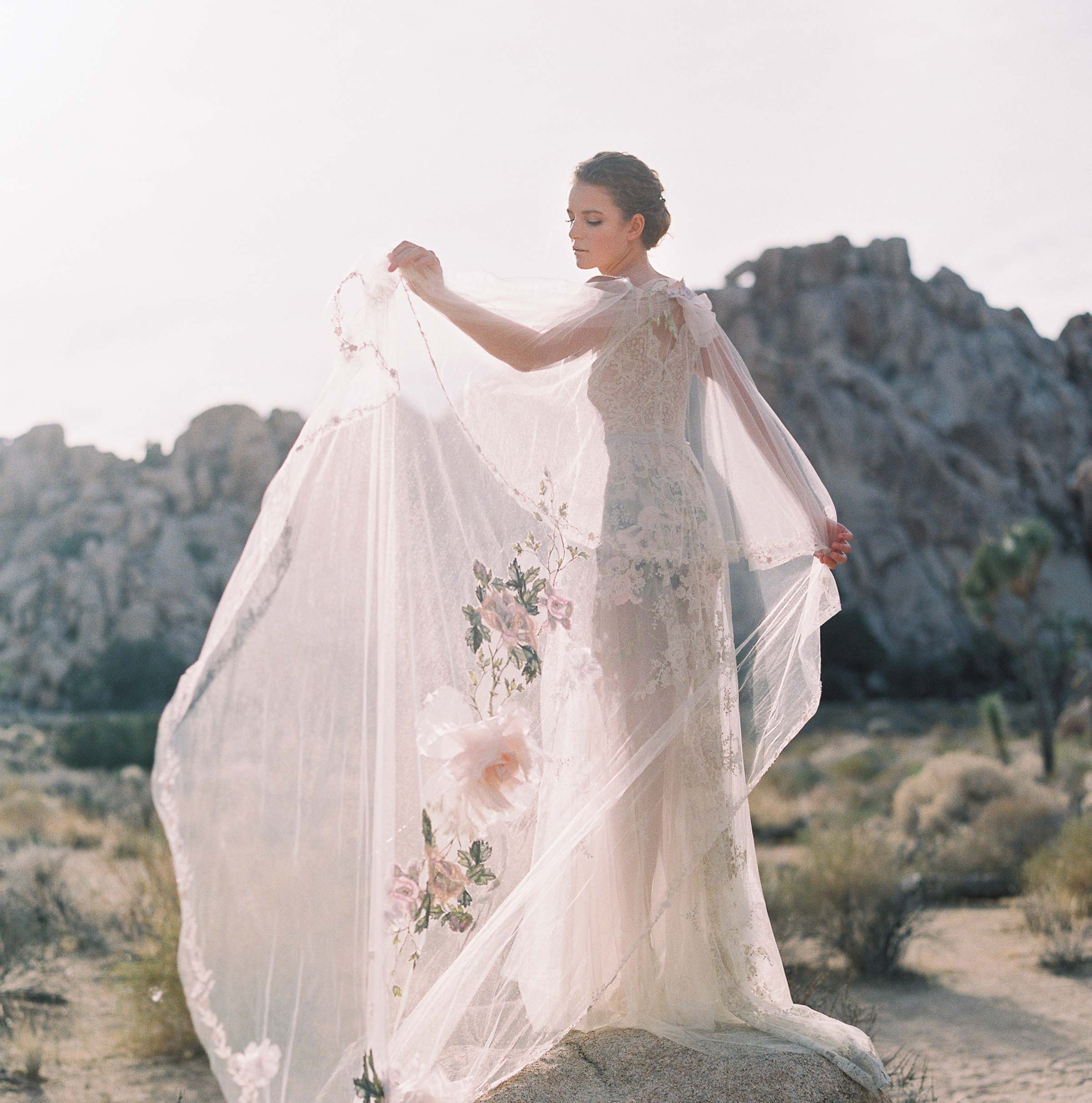 The Enchanted Rose Long Bridal Cape makes a stunning addition for a breath-taking walk through your very own enchanted garden.