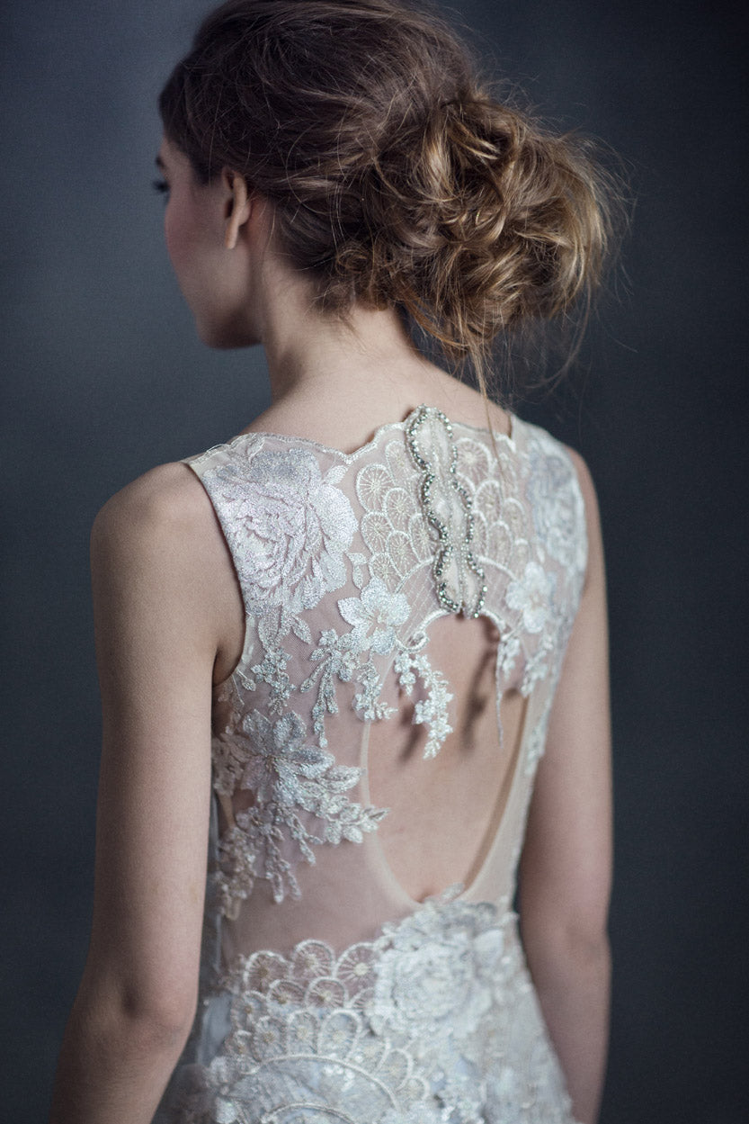 Claire Pettibone is a visionary designer whose collection embodies effortless style, luxurious detailing, and an enchanted spirit. With her deeply feminine sensibility and unique artistry, she creates ethereal, bohemian, and vintage-inspired wedding gowns that make women feel like goddesses.