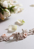 Our re-embroidered floral trim has been artfully crafted into a charming garland with tiny ribbon flowers with hand beaded pearl centers. This dusty rose, blush and taupe trim measures approximately 1” at the widest point, and 1/4” at the narrowest. This trim is available in increments of 3 yards.