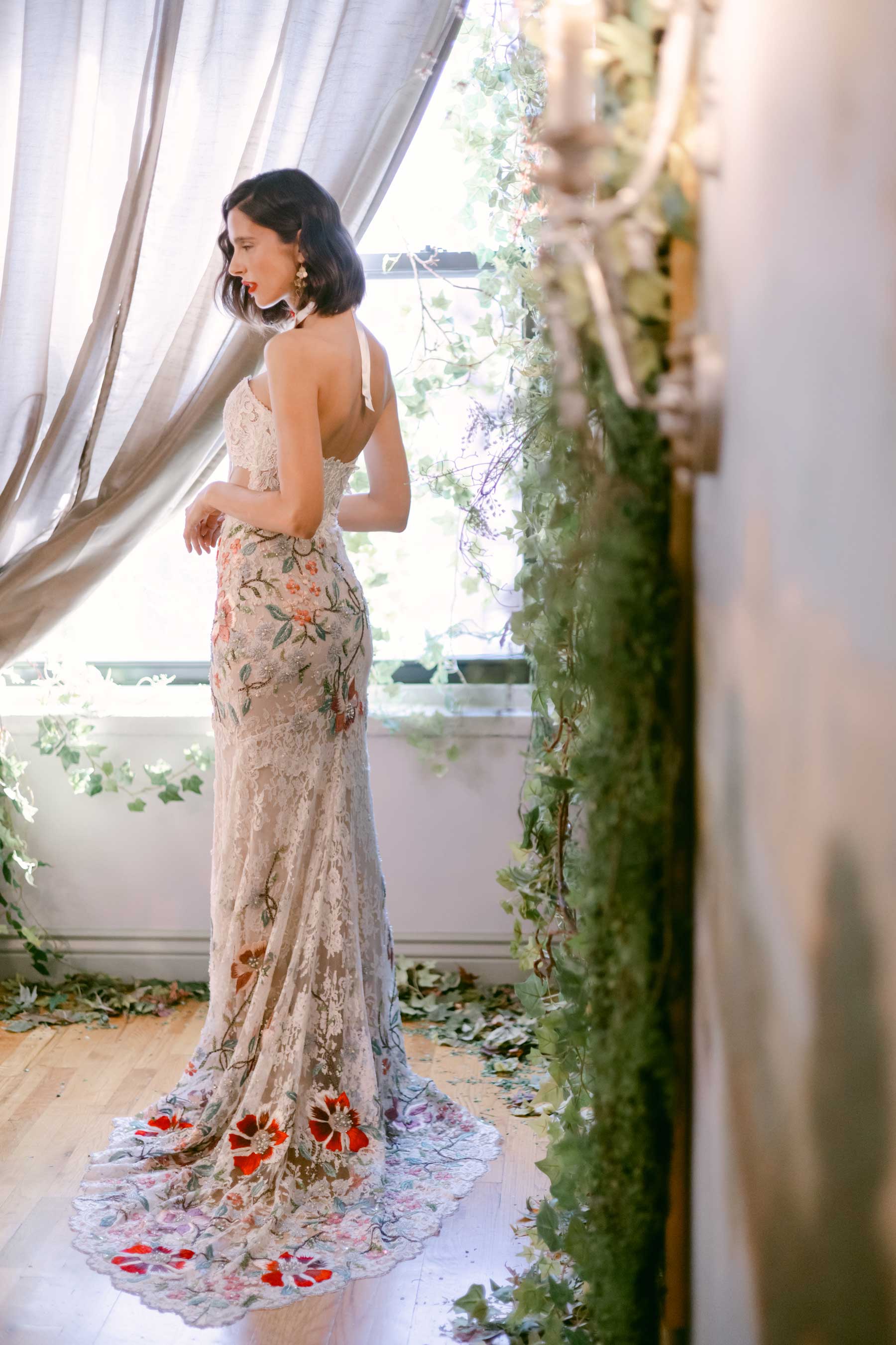 Claire Pettibone is a visionary designer whose collection embodies effortless style, luxurious detailing, and an enchanted spirit. With her deeply feminine sensibility and unique artistry, she creates ethereal, bohemian, and vintage-inspired wedding gowns that make women feel like goddesses.