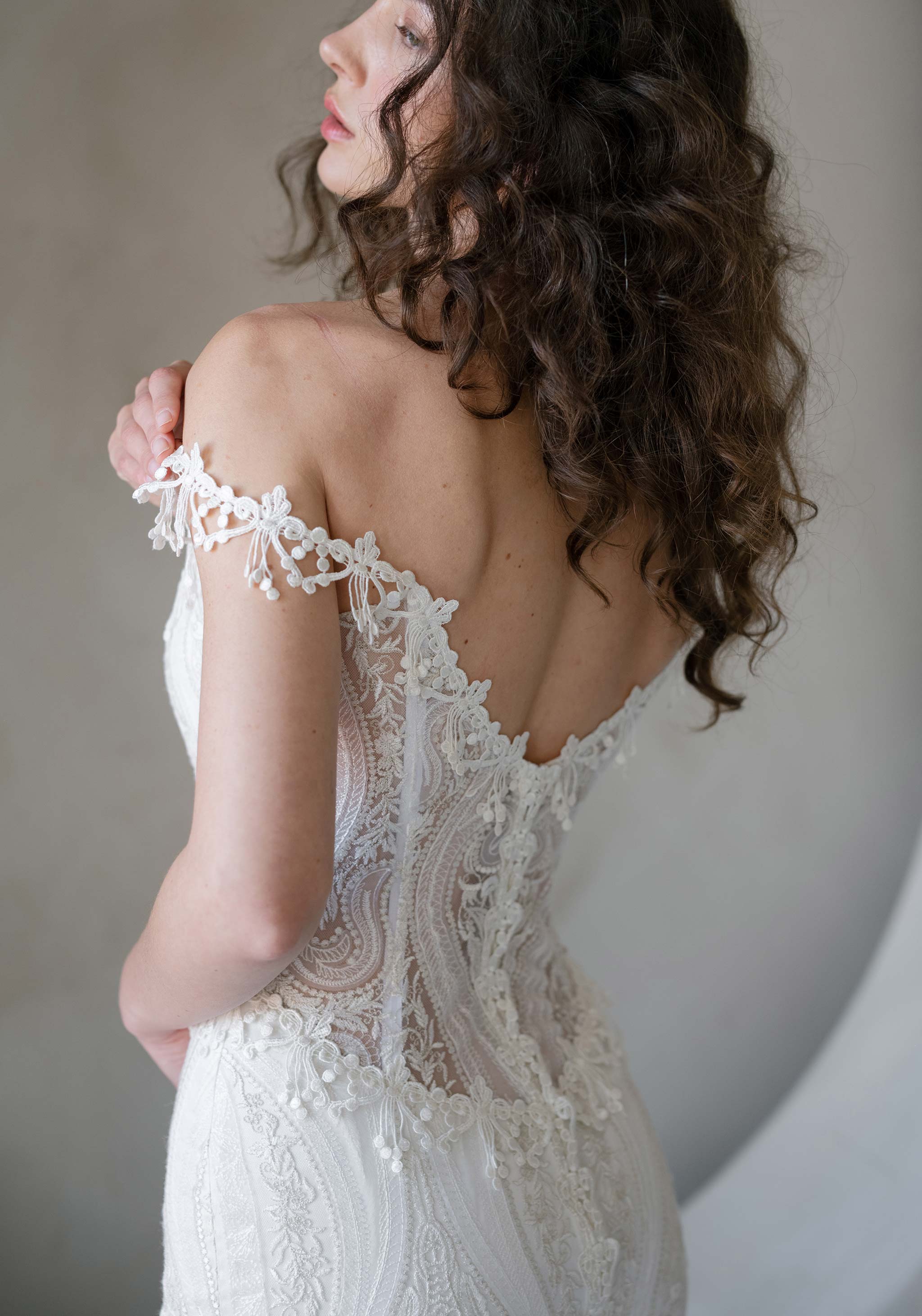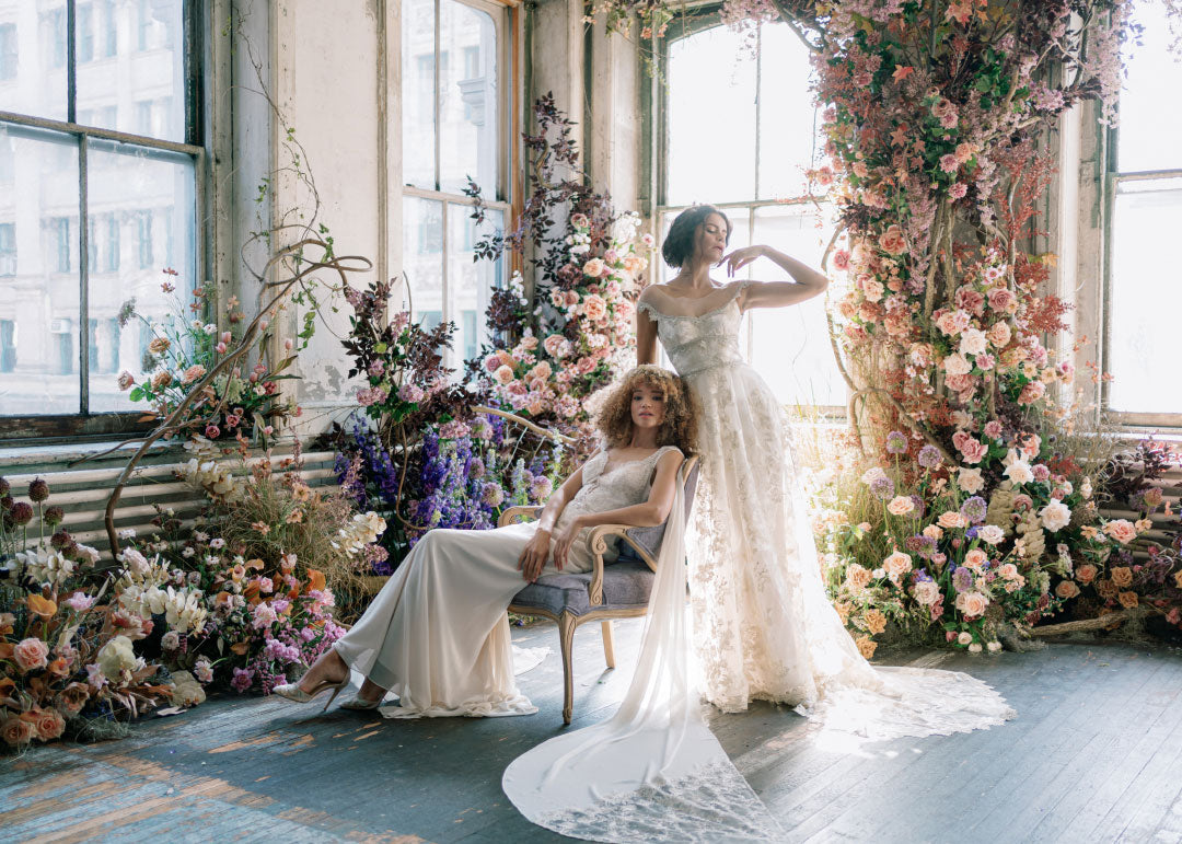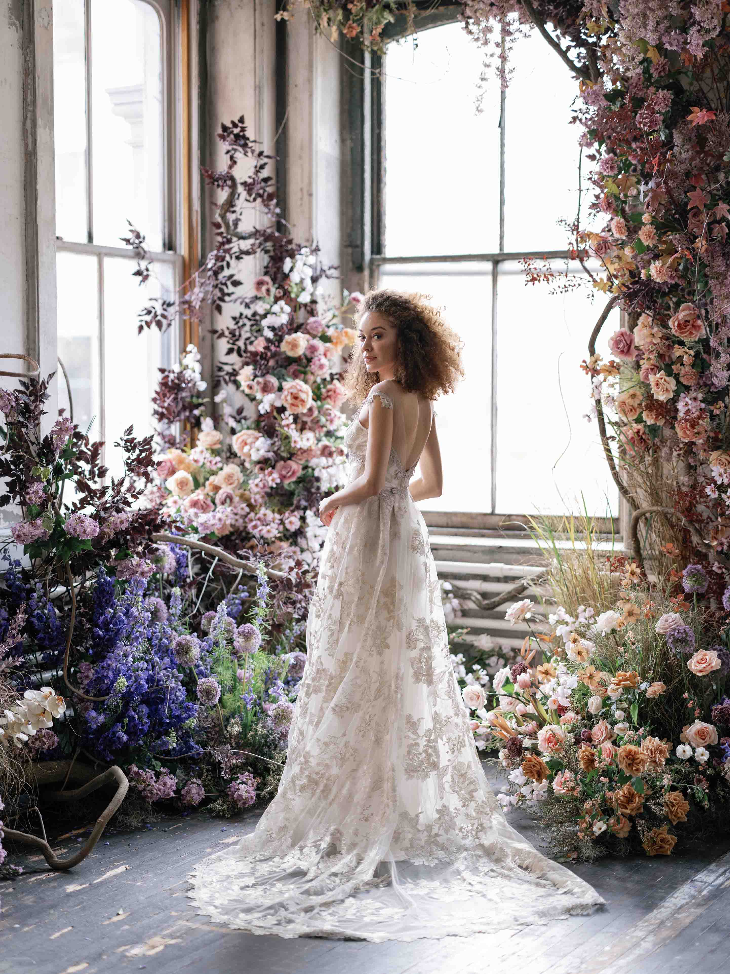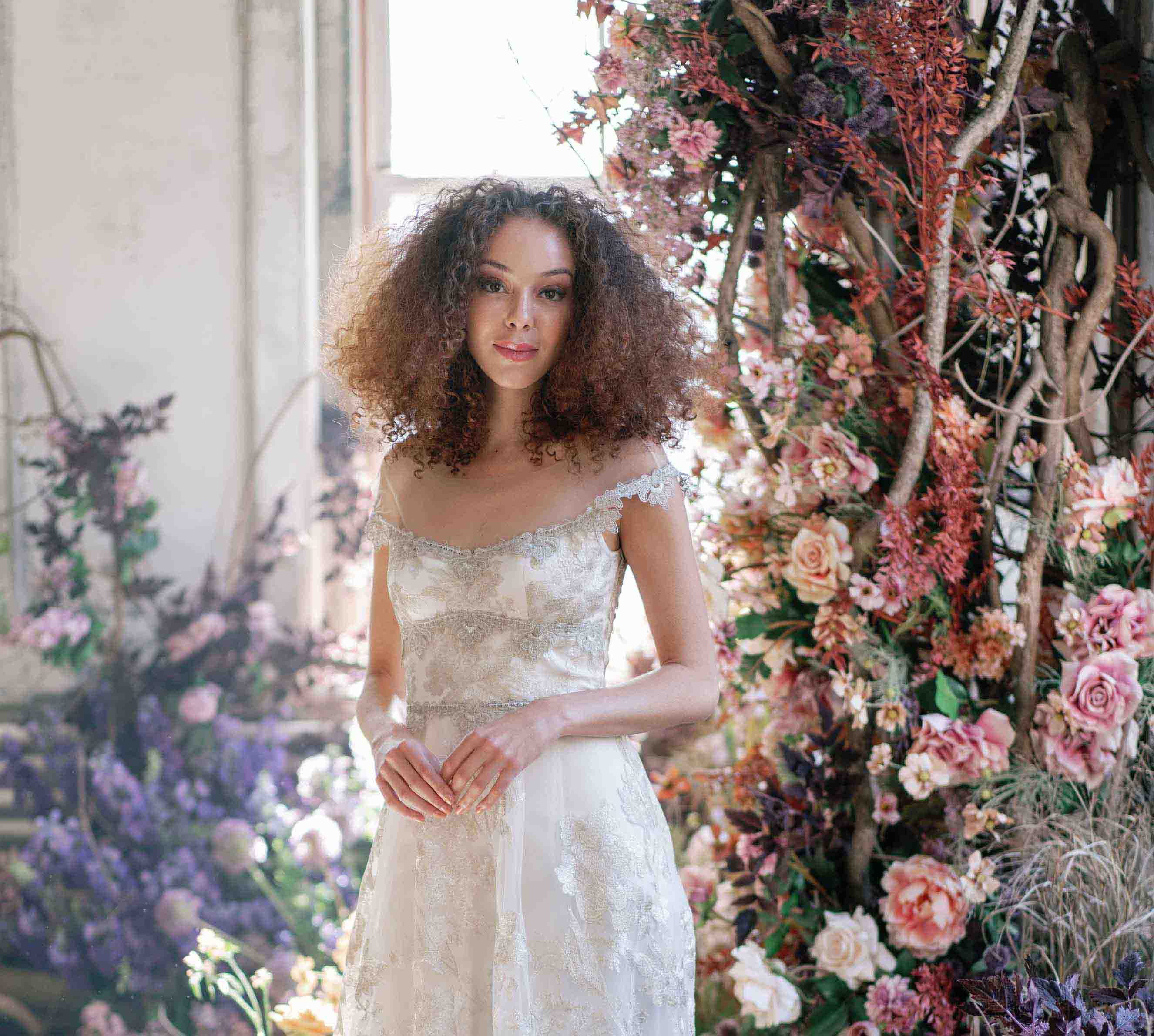 Claire Pettibone is a visionary designer whose collection embodies effortless style, luxurious detailing, and an enchanted spirit. With her deeply feminine sensibility and unique artistry, she creates ethereal, bohemian, and vintage-inspired wedding gowns that make women feel like goddesses.